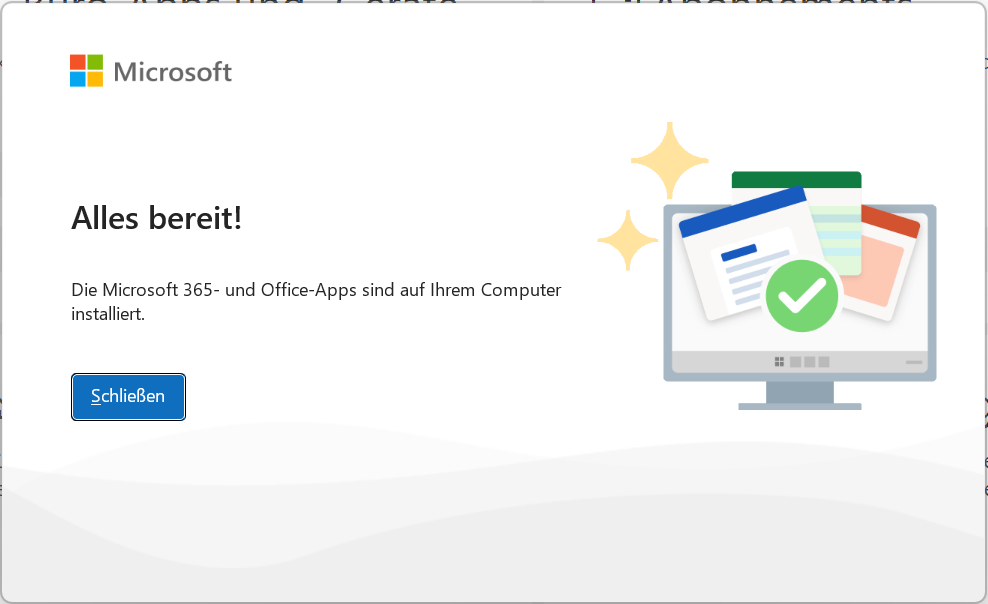 Nach erfolgreicher Installation erscheint die folgende Meldung: